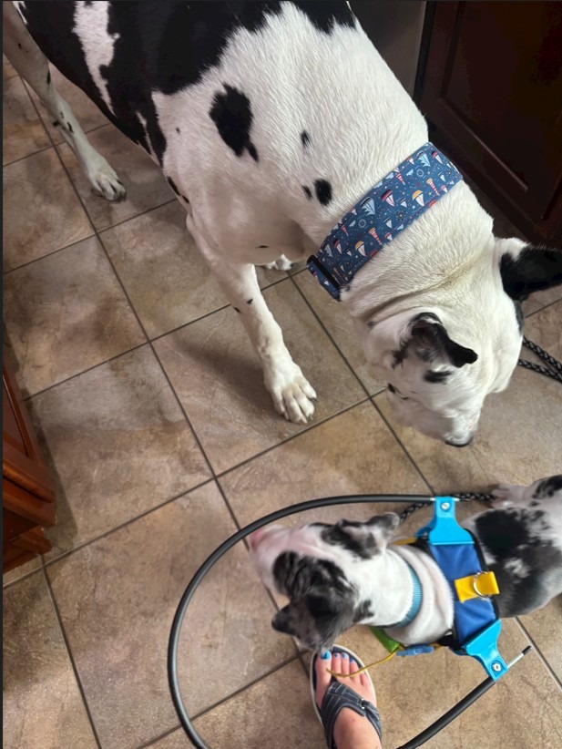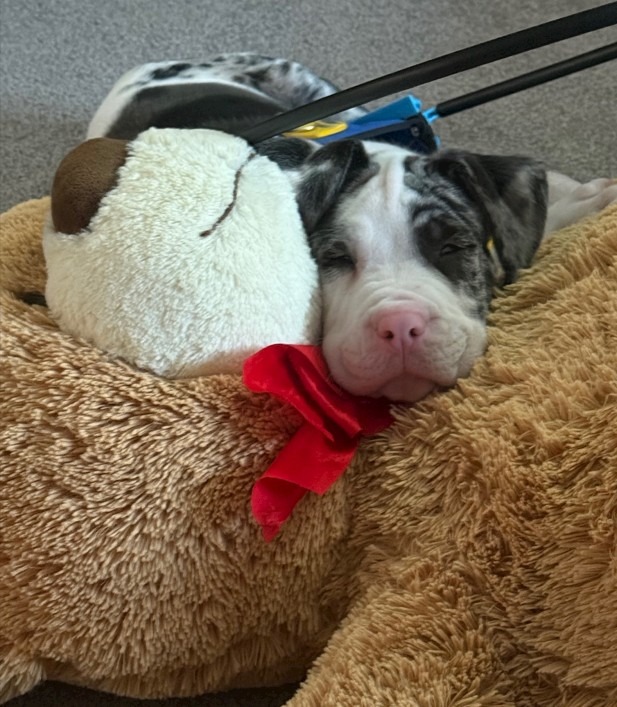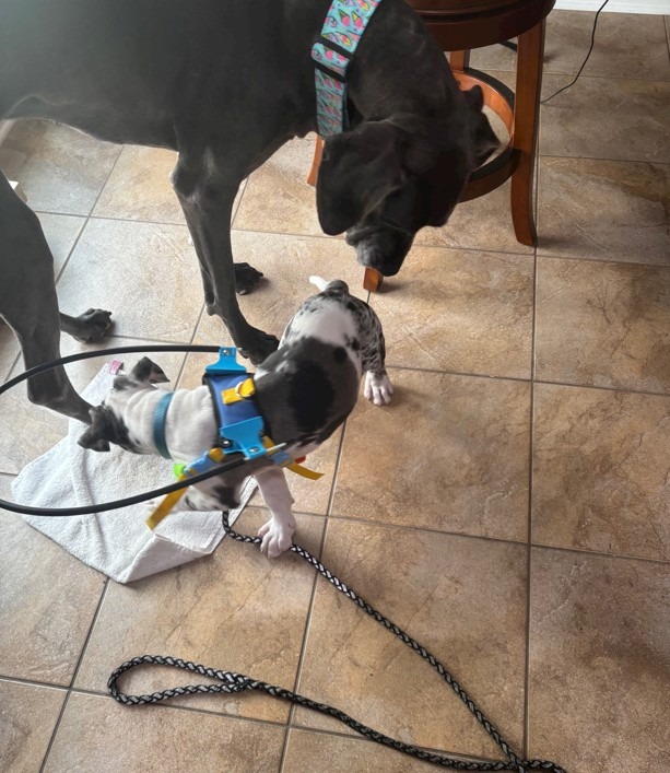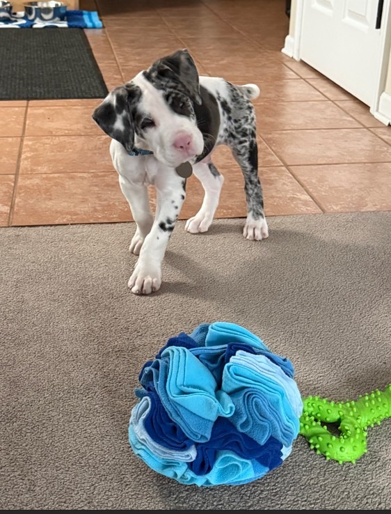 Chico is a blind 10 week old Harlequin Great Dane mix. He is very smart and adaptive.
